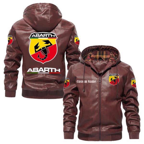 Custom Name Abarth PU Leather Hooded Jacket – Personalized Logo Car Motorcycle Model