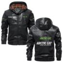 Custom Name Arctic Cat PU Leather Hooded Jacket – Personalized Logo Car Motorcycle Model