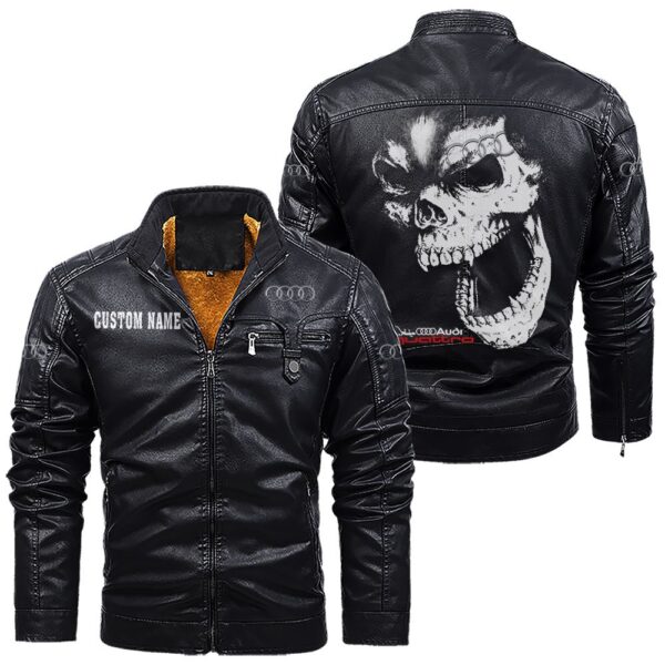 Custom Name Audi Quattro Skull Leather Jacket – Personalized Logo Car Motorcycle Model