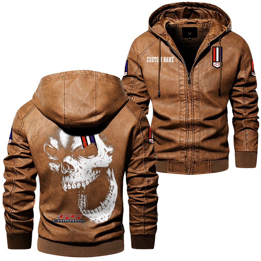 Custom Name Camaro Ss Skull Leather Jacket – Personalized Logo Car Motorcycle Model