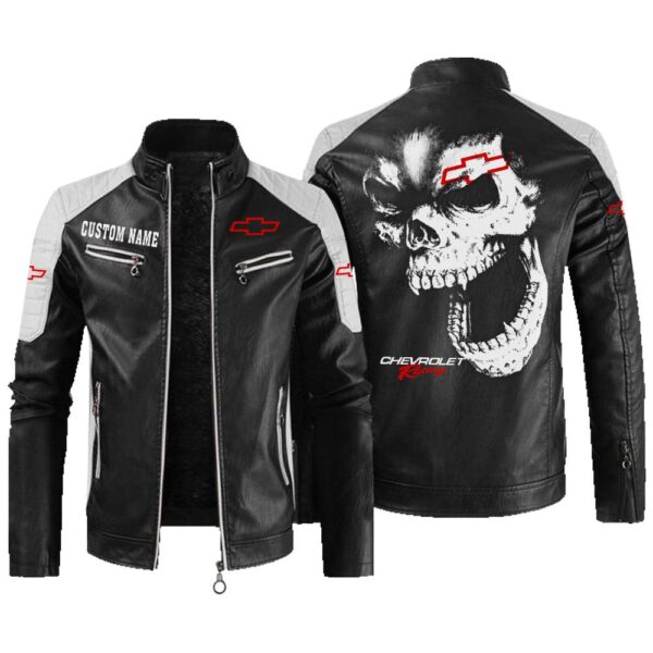 Custom Name Chevy Racing Contrast Leather Jacket – Personalized Logo Car Motorcycle Model