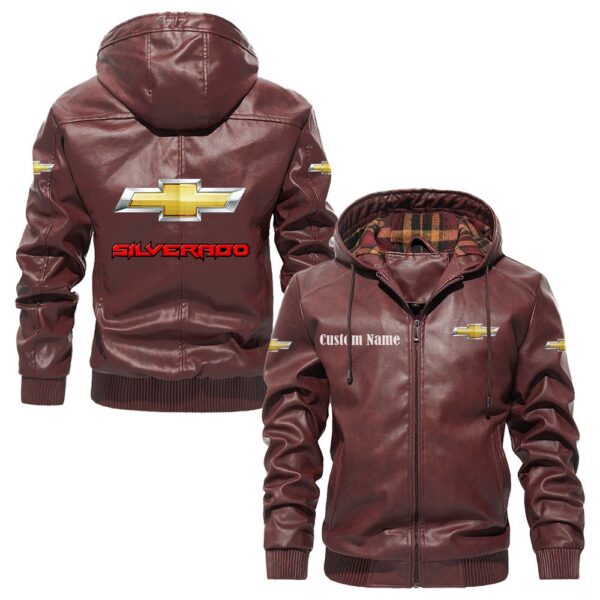 Custom Name Chevy Silverado PU Leather Hooded Jacket – Personalized Logo Car Motorcycle Model