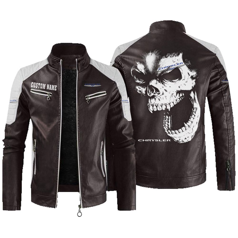 Custom Name Chrysler Contrast Leather Jacket – Personalized Logo Car Motorcycle Model