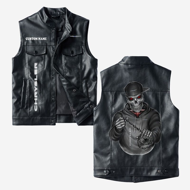 Custom Name Chrysler Leather Vest – Personalized Logo Car Motorcycle Model