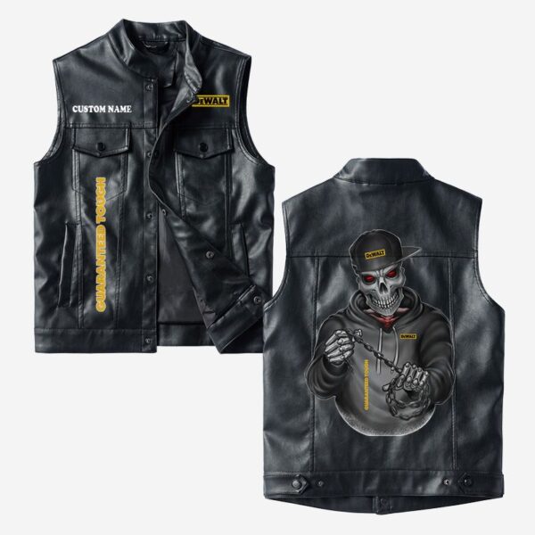Custom Name Dewalt Leather Vest – Personalized Logo Car Motorcycle Model