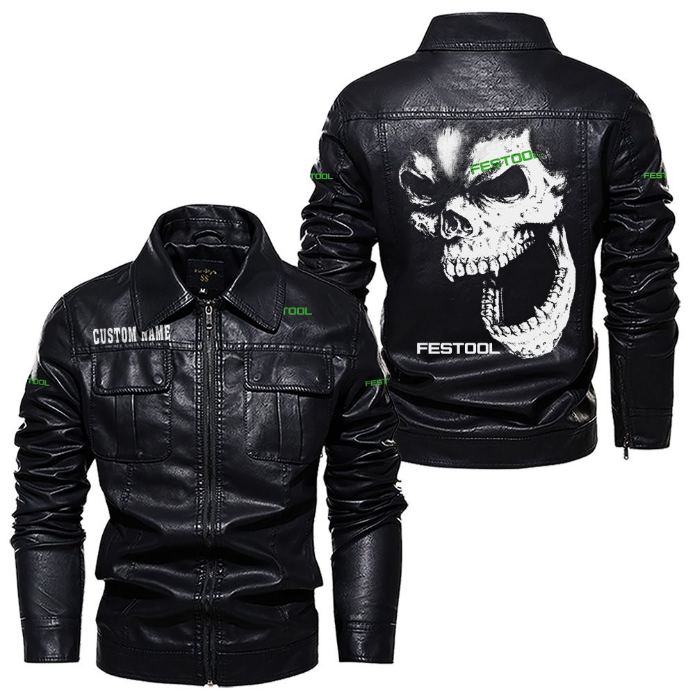 Custom Name Festool Skull Leather Jacket – Personalized Logo Car Motorcycle Model