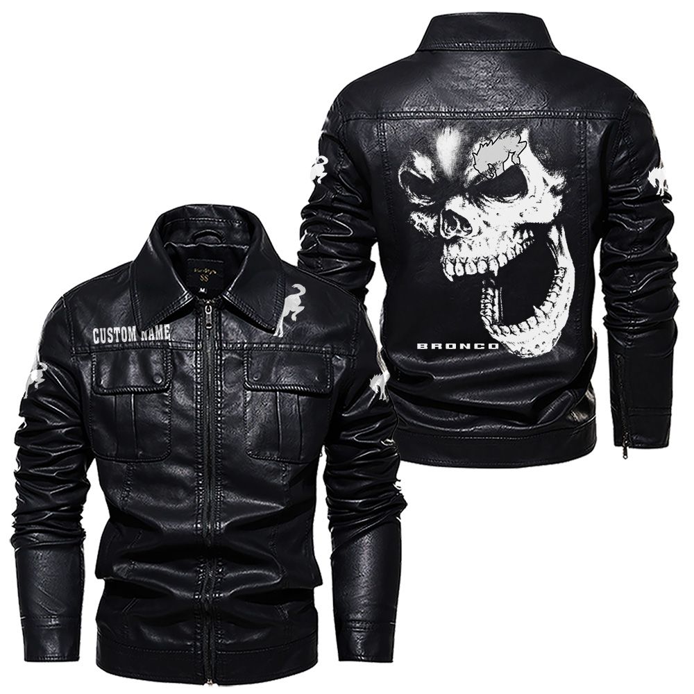 Custom Name Ford Bronco Skull Leather Jacket – Personalized Logo Car Motorcycle Model