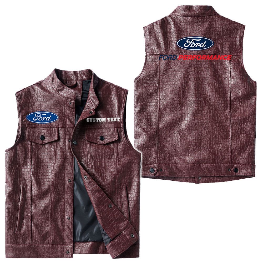 Custom Name Ford Performance Leather Vest – Personalized Logo Car Motorcycle Model