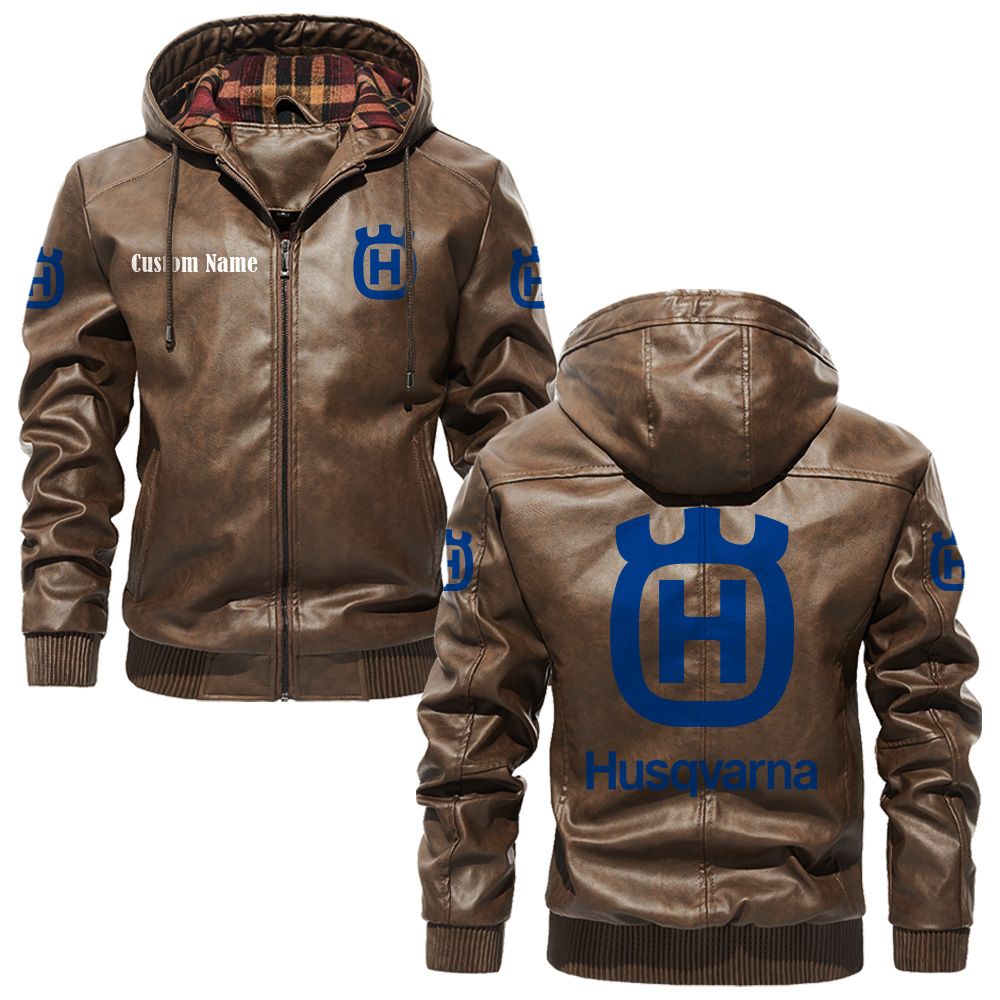 Custom Name Husqvarna PU Leather Hooded Jacket – Personalized Logo Car Motorcycle Model