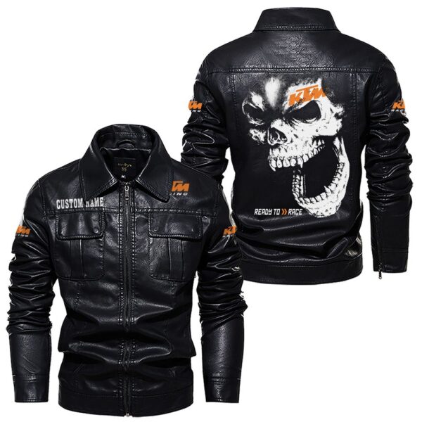 Custom Name Ktm Skull Leather Jacket – Personalized Logo Car Motorcycle Model