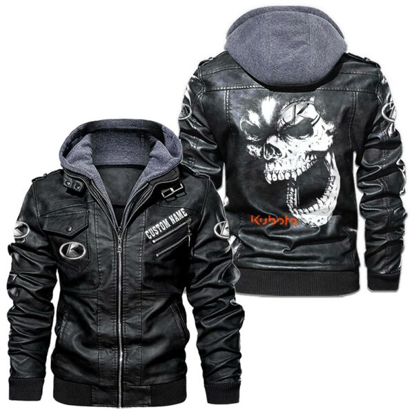 Custom Name Kubota Skull Leather Jacket – Personalized Logo Car Motorcycle Model