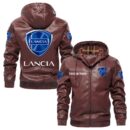 Custom Name Lancia PU Leather Hooded Jacket – Personalized Logo Car Motorcycle Model