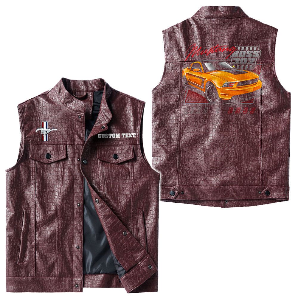 Custom Name Mustang Boss 302 Leather Vest – Personalized Logo Car Motorcycle Model