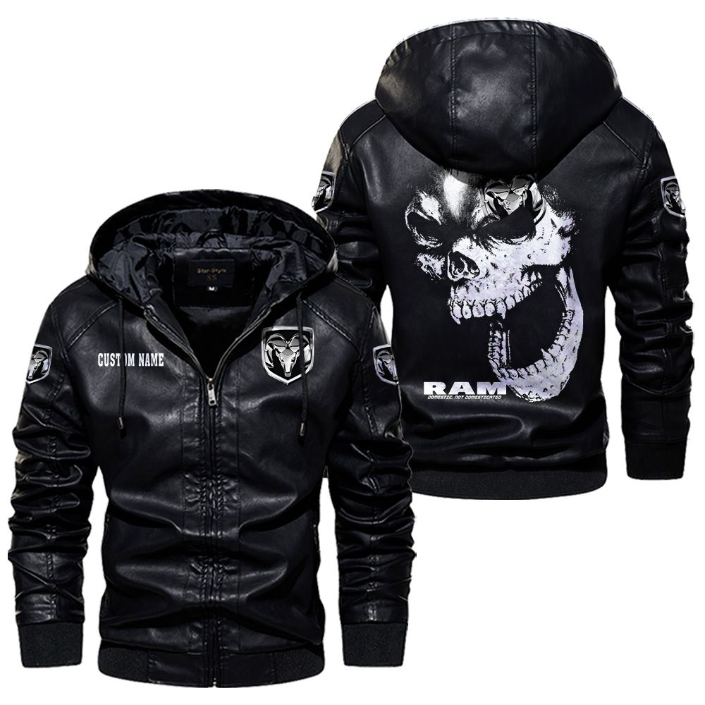 Custom Name Ram Skull Leather Jacket – Personalized Logo Car Motorcycle Model