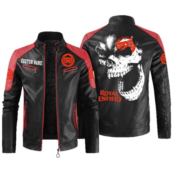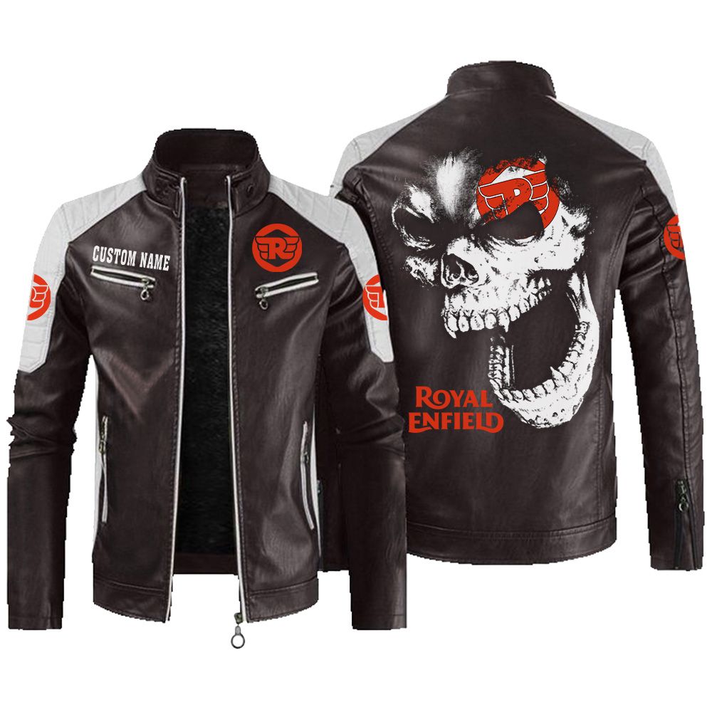 Custom Name Royal Enfield Contrast Leather Jacket – Personalized Logo Car Motorcycle Model