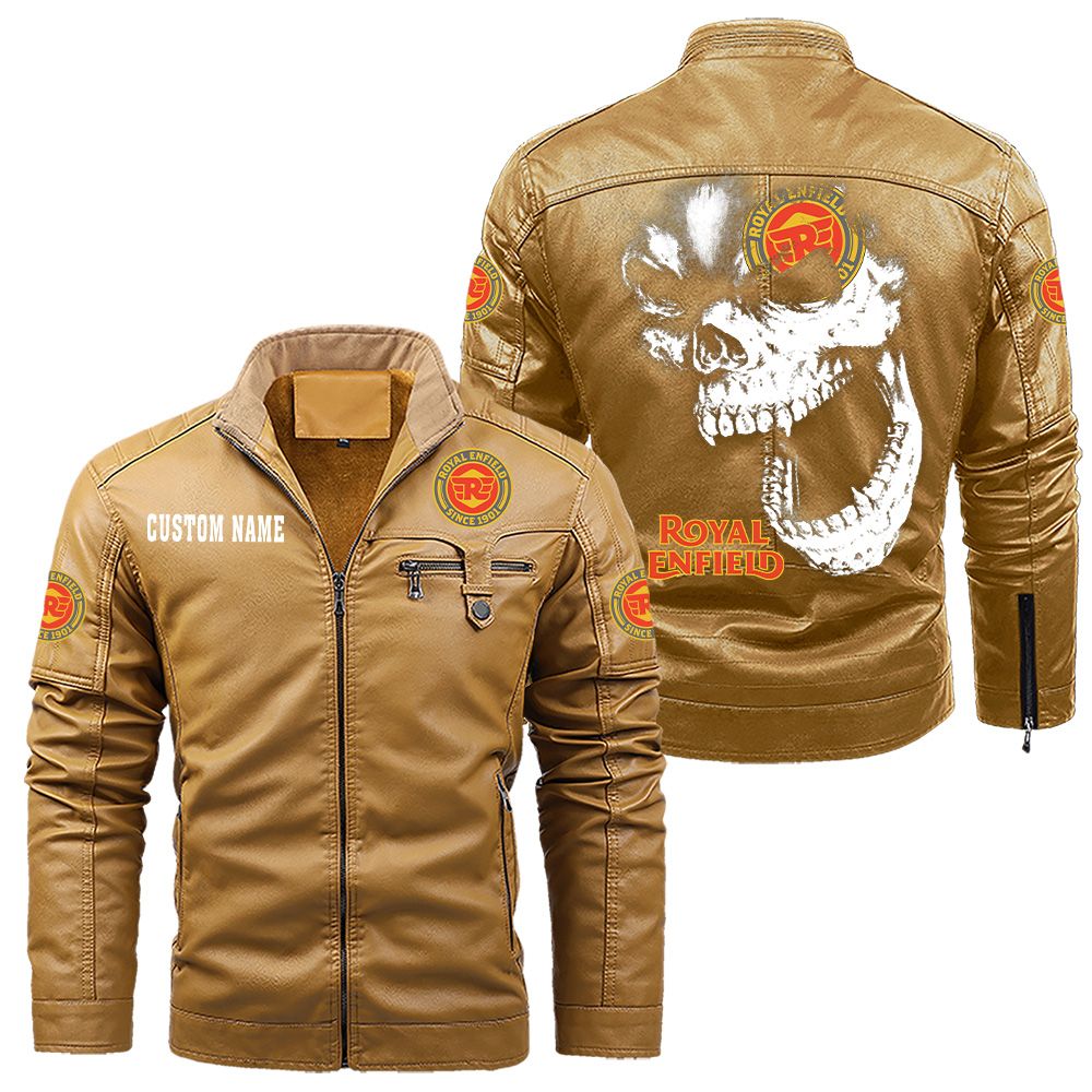 Custom Name Royal Enfield Skull Leather Jacket – Personalized Logo Car Motorcycle Model